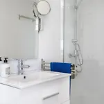 O design interior inclui mesa de trabalho e Wi-Fi e TV. O quarto inclui chuveiro, secador de cabelo e lençóis de banho.